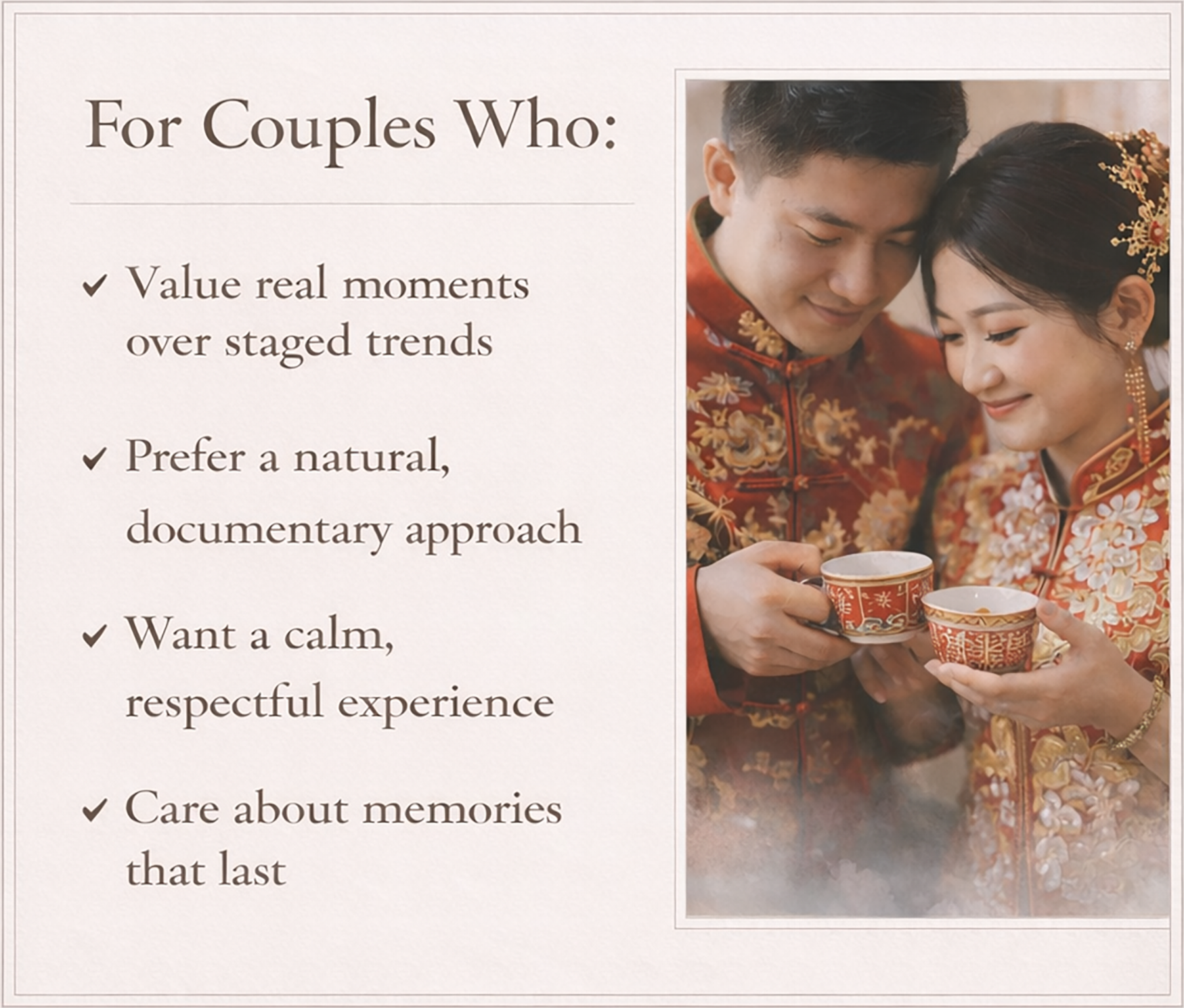 Final deliverables are typically ready within 6–8 weeks after the wedding.Do you provide guidance during the shoot?