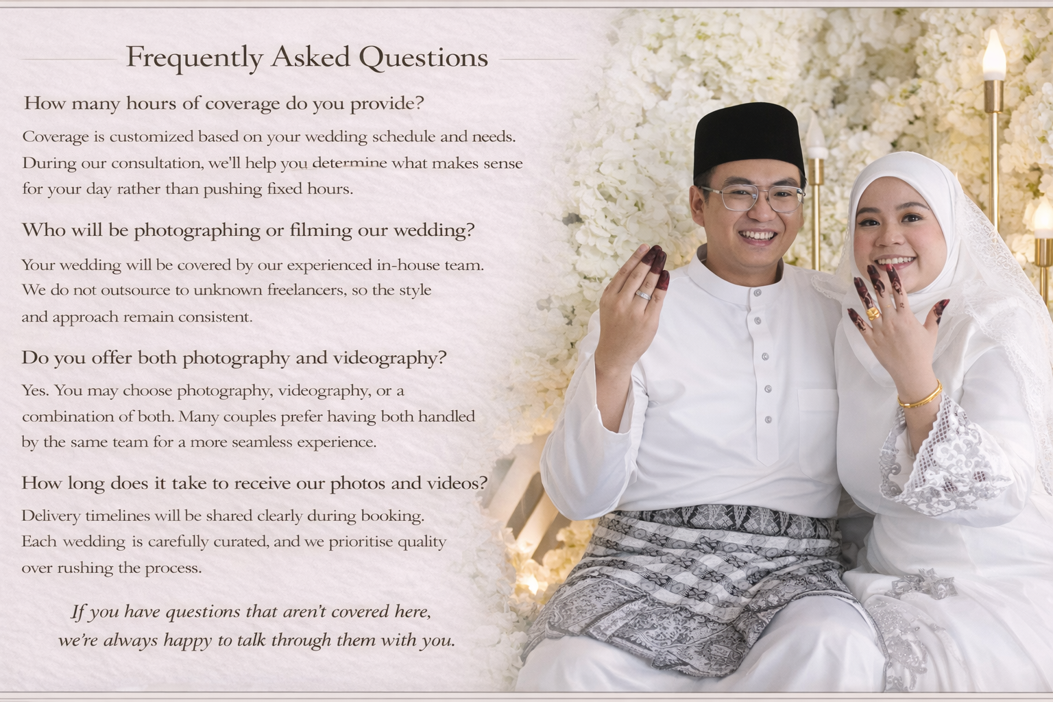 Wedding Photography & Videography – FAQ